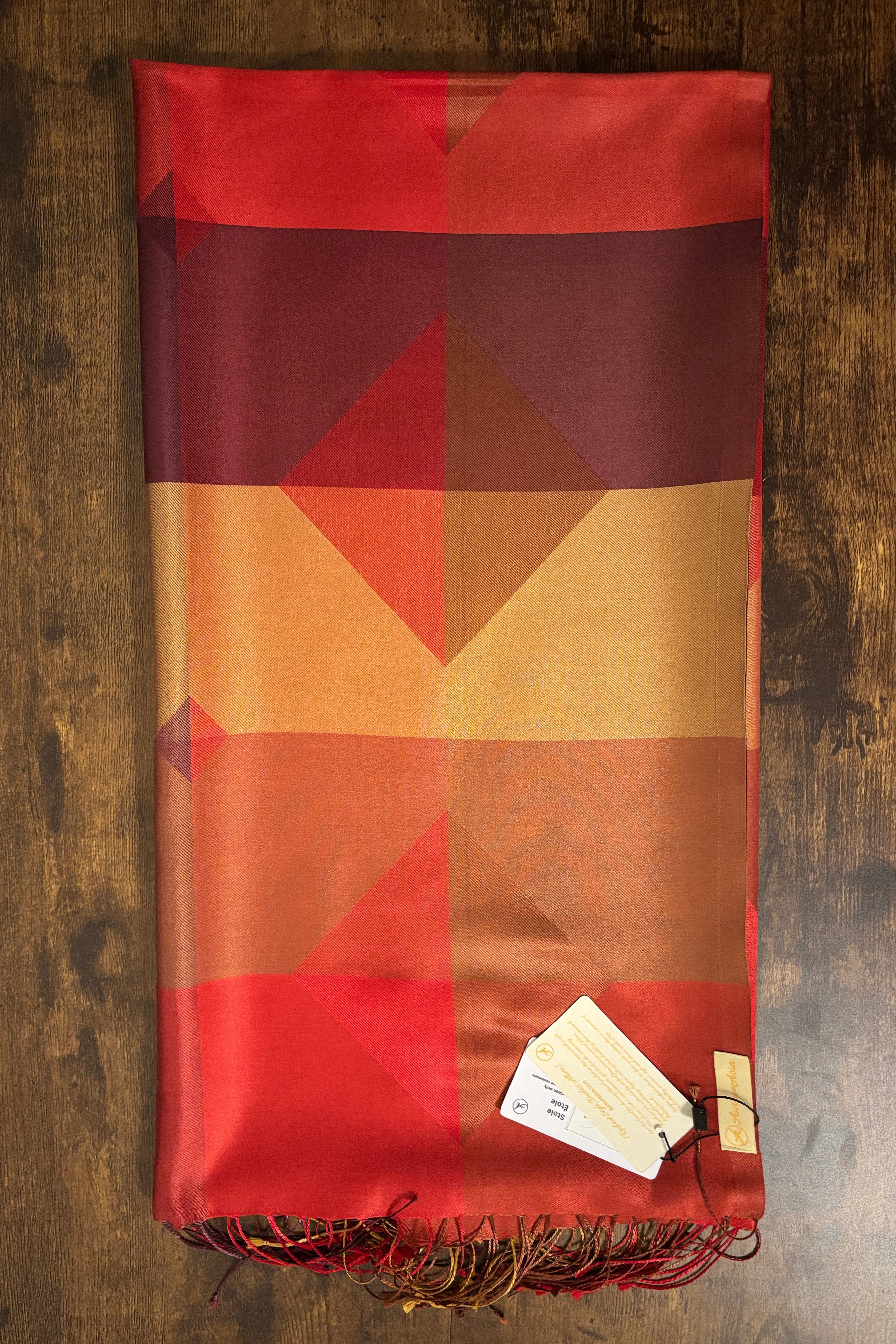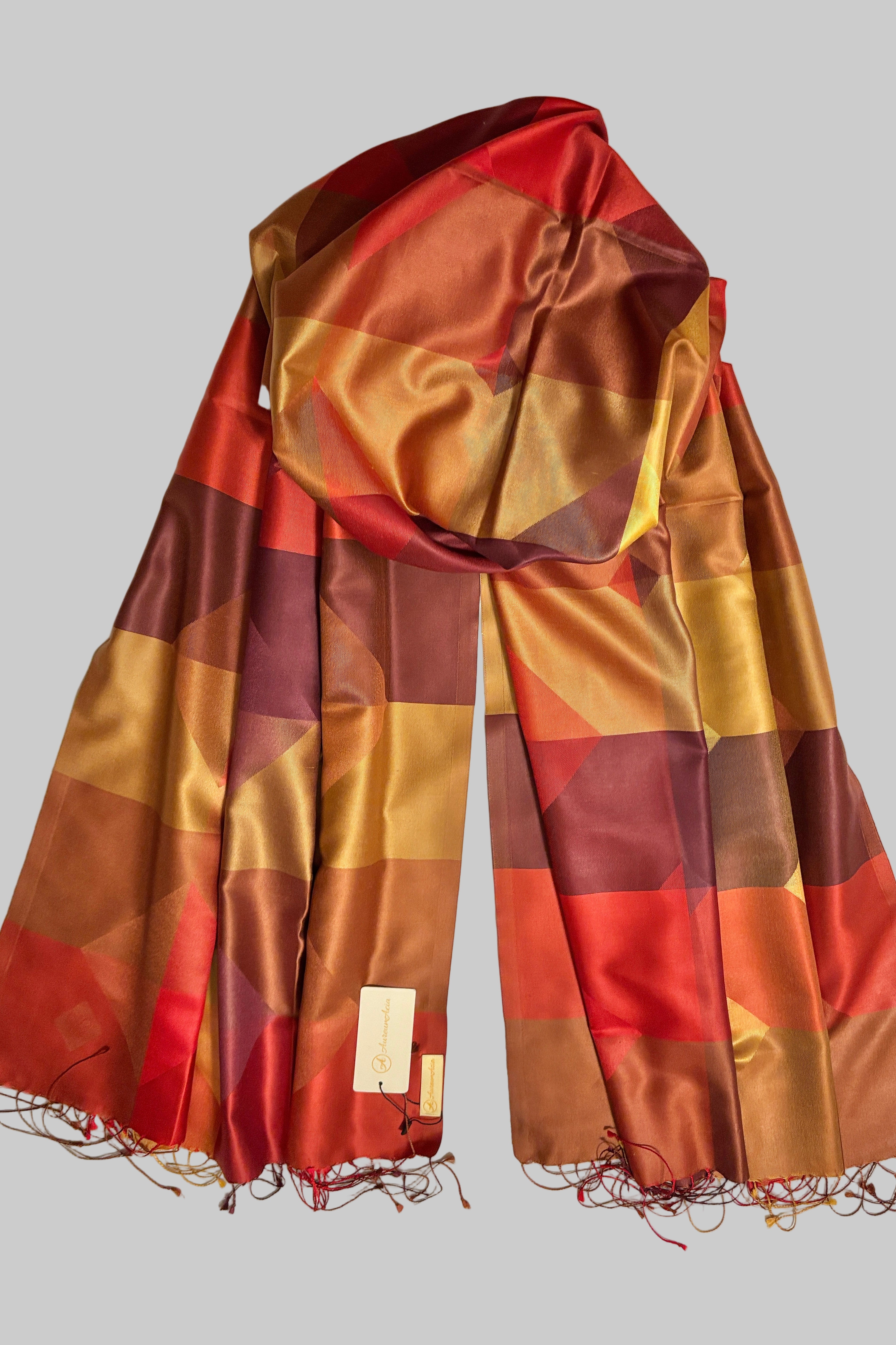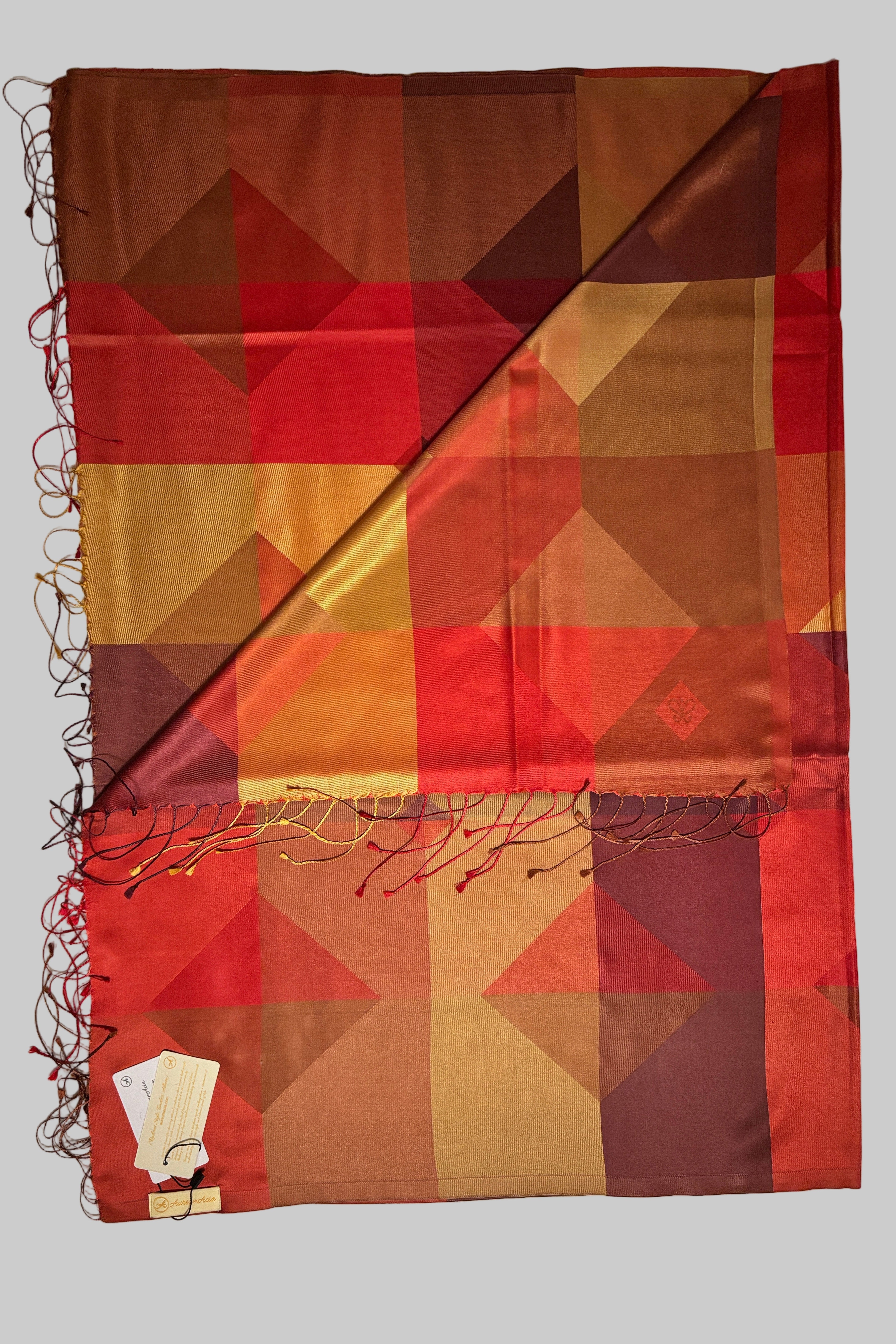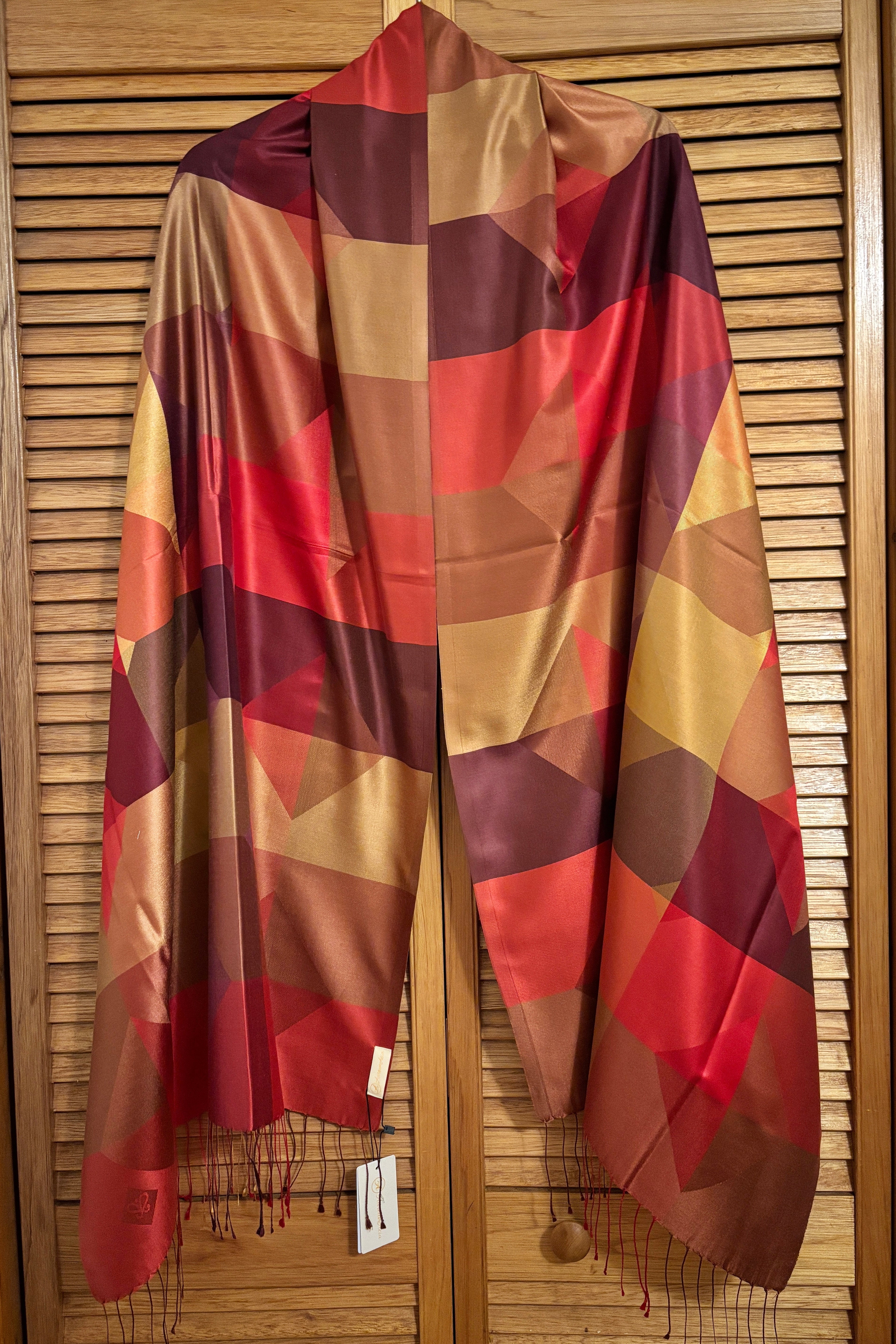100% Silk - Designer Scarf - Red, Maroon, Copper & Golden Prosperity